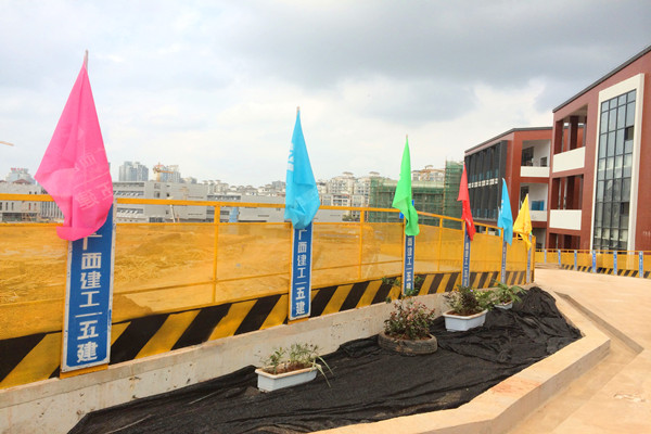 帮扶期间,在分公司党委的推动下,分管片区的副经理林信亲自督导协调,广西建工大厦项目在安全文明标准化施工方面给予了南宁三中国际校区项目最大支持,提供了多个自主研发的定型化、工具化产品。南宁三中国际校区项目全体人员积极主动配合,齐心协力整改完善。如今,走进南宁三中国际校区项目,彩旗迎风飘扬,凉亭、安全通道设置规范美观,班前讲台、消防物质柜设施配置齐全到位、基坑临边防护换上了广西建工大厦自主研发的钢板网,安全防护设施牢固醒目,场容场貌给人焕然一新的感觉。