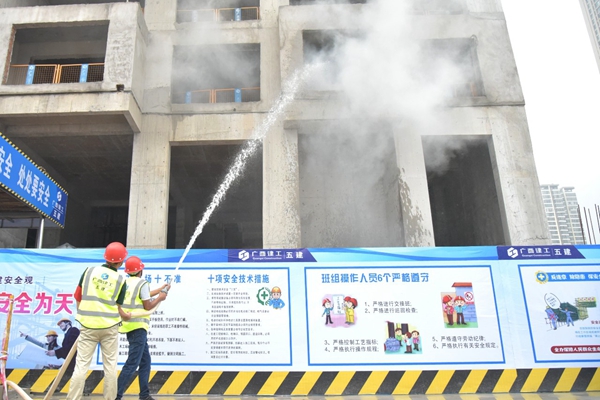 6月26日上午,一分公司承建的中房·紫东项目举行火灾事故应急预案演练活动,公司党委副书记、总经理蒙勇,柳州市北城投资开发集团有限公司副总经理郭铁军,柳州市北城投资开发集团有限公司安委办主任陈燚出席活动。
