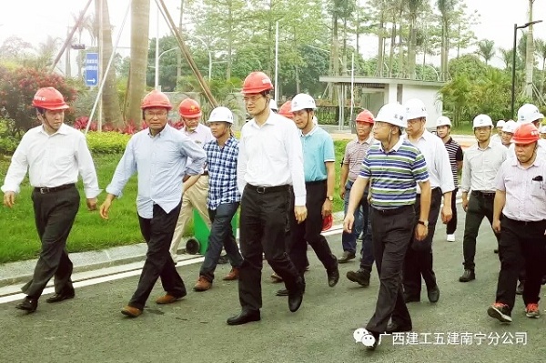 5月2日上午,集团公司董事长、党委书记金宁运莅临荔园饭店项目施工现场指导室内装修工作。公司董事长、党委书记黄鼎龙,总经理、党委副书记梁发深,南宁分公司经理、党委副书记岑锦秀,党委书记、副经理杜福昌等陪同。