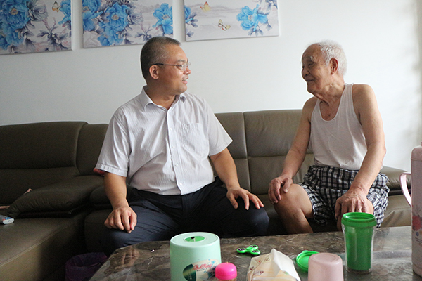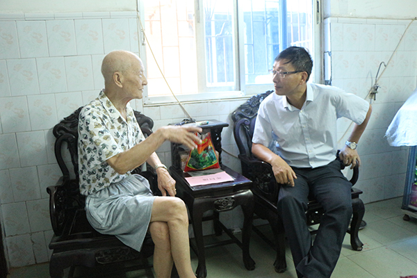 随后,一行人又来到老干部蔡世钧家中。蔡老今年也已85岁高龄,且因病造成腿脚多年行动不便,长期需要照顾。彭书记关切地询问蔡老的身体状况,得知蔡老在女儿的细心照料下,目前身体状况良好,彭书记称赞其女儿有孝心。对公司彭书记一行在中秋节前夕登门看望慰问,蔡老感受到公司的关怀和温暖,感到组织没有忘记自己,非常高兴,表示要好好生活,继续关注公司的发展,多为公司献计献策。(韦金戎 何仕能∕图文)