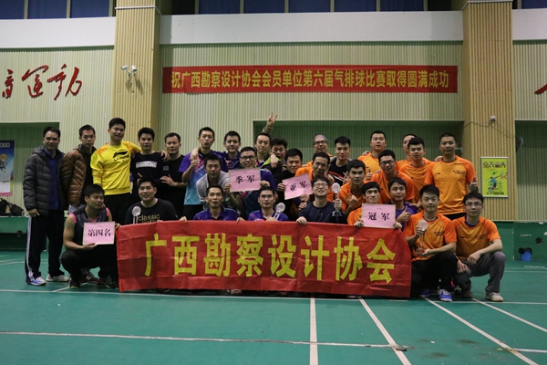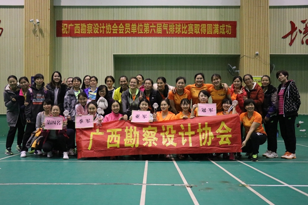 11月25-26日,广西勘察设计协会第六届会员单位气排球赛在南宁工人文化宫开幕,公司工会和设计研究院组织了来自公司机关、三分公司、五分公司、南宁分公司、金结分公司、市政分公司、物业公司及设计研究院的精英球员组成男队和女队两支队伍参赛,经过奋力拼搏,最终男女队都以全胜战绩取得冠军,取得公司参加该项赛事以来最好成绩。(设计研究院 朱仕进 赖恩平/图文)