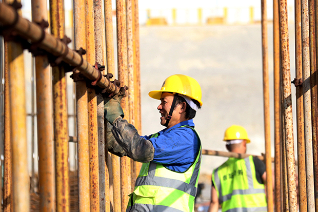 工人施工面带笑容