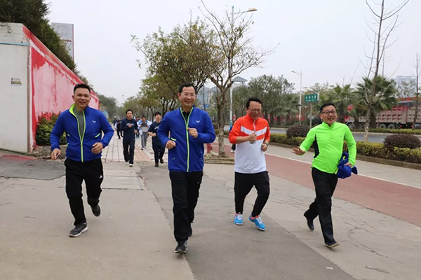 在2018年的第一天,公司第三十四届职工元旦长跑比赛拉开帷幕。1月1日上午8点,公司领导黄鼎龙、蒙勇、彭业波、冯锦华、黄诚、龙丽荣、李能斌、陈永、何显文和柳州、南宁片区的800多名员工一同迎着新时代的阳光奔跑。