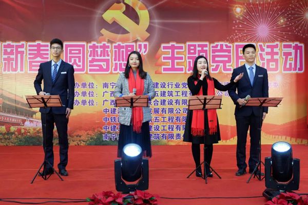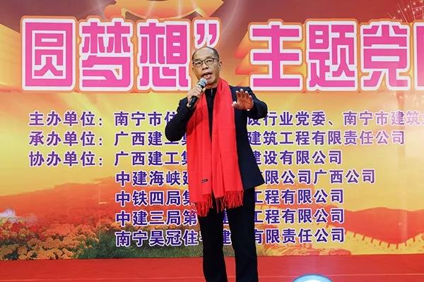 南宁市住建行业党委书记、市建筑业联合会会长李宗泽在致辞中表示,南宁市住建行业党委紧跟时代脚步,以提升行业党建工作整体水平为目标,不断夯实党建基础,打造党建特色。开展此次主题党日活动,就是希望用“说”和“唱”的形式,开启新春梦想,传递新希望,点燃正能量,一同向着“建设壮美广西,共圆复兴梦想”的目标奋进。