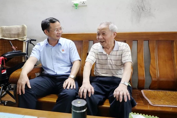 彭业波来到1964年入党,已有55年党龄的何文德老党员家中慰问,叮嘱何老要保重好身体,坚定生活信心,相信在公司党委的关怀下,生活一定会越过越好