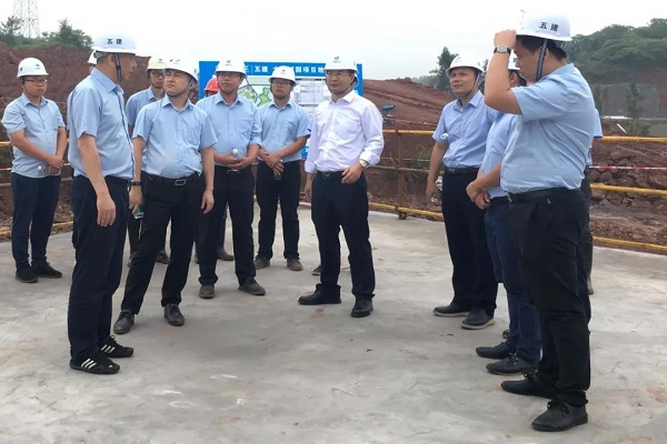 华西公司党支部书记、总经理朱洪涛,公司办公室主持工作副主任李战雄,南宁分公司、华西公司、项目管理人员陪同。(南宁分公司 杜雪莲/文 潘家娥/图)