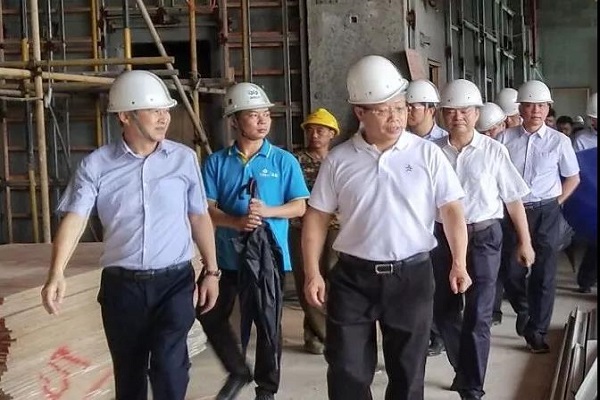 6月24日上午,自治区政协副主席、百色市委书记、市人大常委会主任彭晓春,百色市委副书记、市长周异决到南宁分公司承建的百色饭店项目调研,了解项目进展情况。