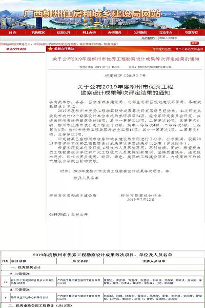 柳州市优秀工程勘察设计成果等次评定是柳州市工程勘察设计行业权威性评奖活动,获奖作品将直接获得由柳州市住建局和柳州市勘察设计协会推荐参评自治区优秀工程勘察设计奖评定的资格。
