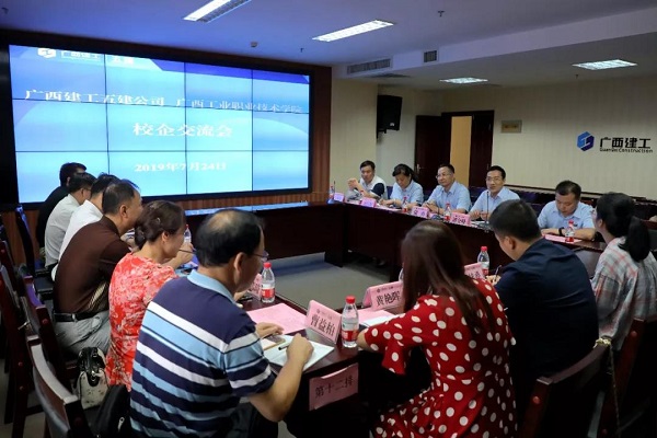 7月24日下午,广西工业职业技术学院党委副书记罗生芳率队到公司考察交流,公司党委副书记、总经理蒙勇,广西工业职业技术学院建筑工程系主任凌艺青,系党总支书记吴伟琦,系副主任潘乾宗,系党总支副书记曹益柏出席交流会。
