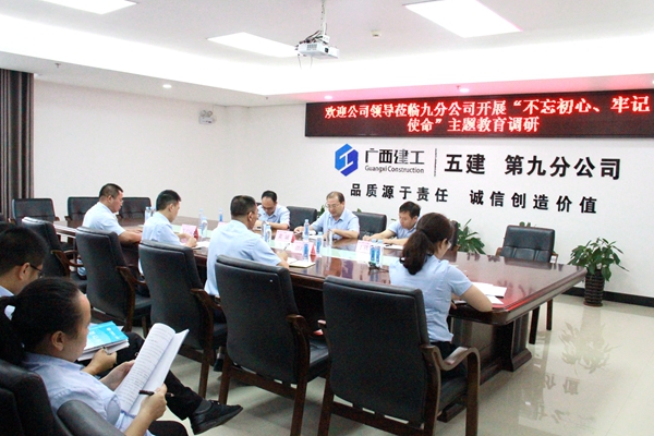 7月9日,公司副总经理黄诚到九分公司开展“不忘初心、牢记使命”主题教育调研,深入基层倾听职工心声,指导分公司、项目部解决工作中遇到的困难和问题。